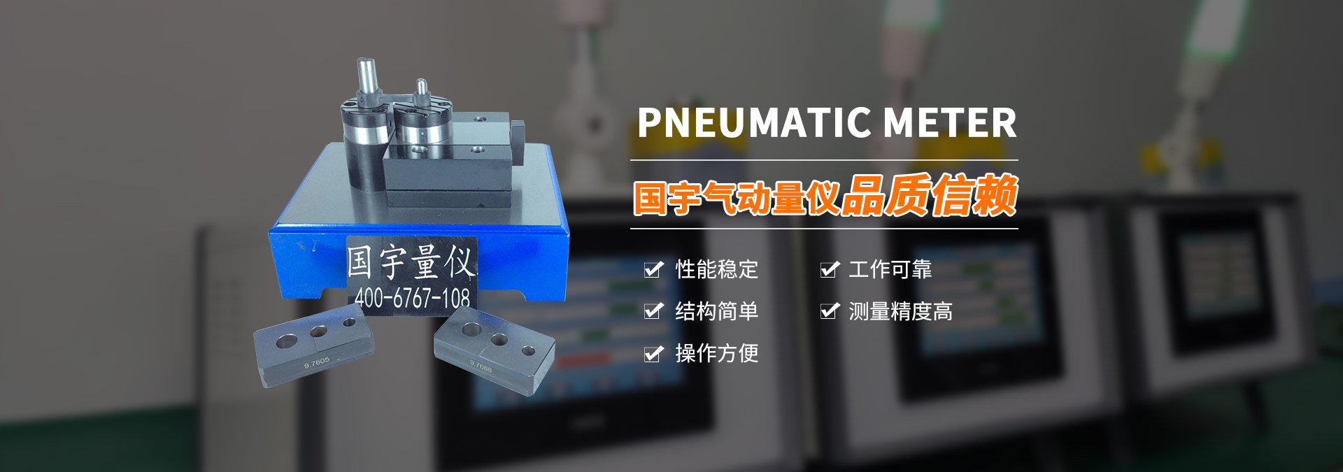 國宇產品 氣動量儀產品主要展示了各種規格氣電工作站,氣電電子等的量儀。氣動量儀操作方法簡單,讀數容易,能夠進行連續測量,很容易看出各尺寸是否合格。能夠實現測量頭與被測表面不直接接觸,減少測量力對測量結果的影響,同時避免劃傷被測件表面,對薄壁零件和軟金屬零件的測量尤為適用。